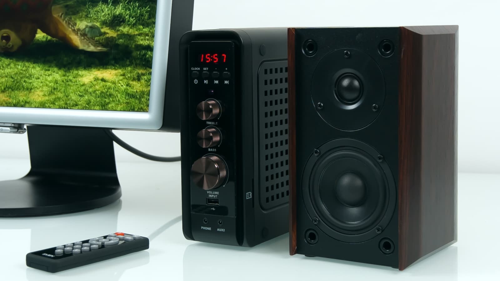 В отличие от традиционных 2.1 наборов, сабвуфер SVEN MS-3000 пассивный. Это позволяет подключить и установить его, например, на пол, а блок усиления и коммутации расположить в любом легко доступном месте. Кстати, блок можно установить, как вертикально, так и горизонтально. Набор SVEN MS-3000 можно использовать не только с компьютером, но и в гостиной, вместо встроенных динамиков телевизора.