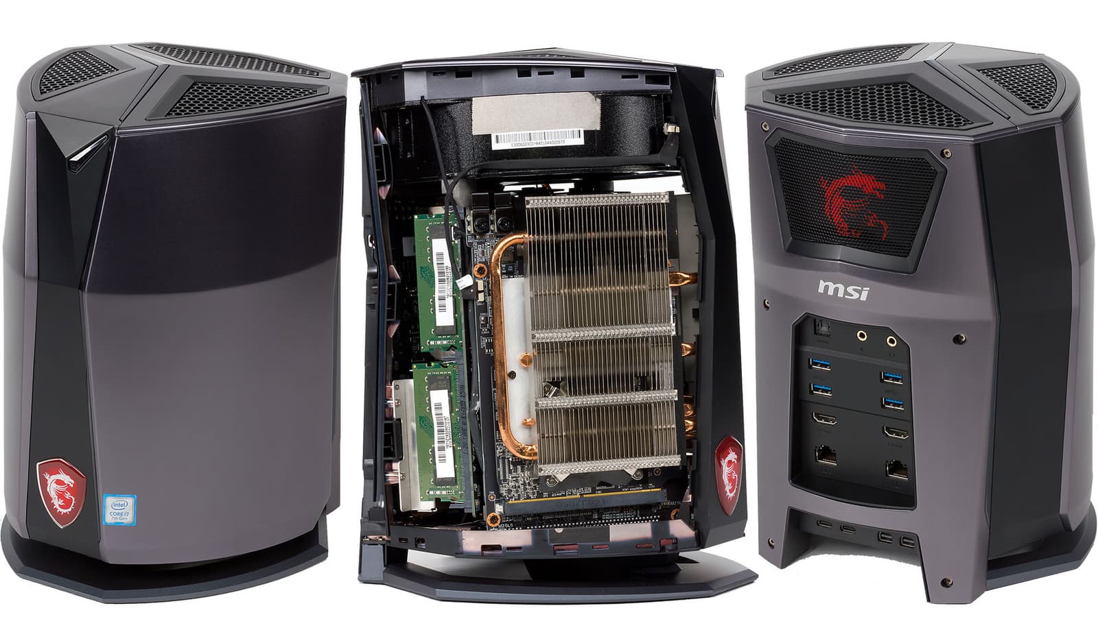 Игровые компьютеры серии MSI Vortex были впервые продемонстрированы на выставке CES еще в 2016 году. Уникальность этих компьютеров заключается в том, что они представляют собой сочетание высокой производительности и компактных размеров. Корпус ПК имеет объем всего 6,5 л, и при этом речь идет о компьютере на базе комплектующих для топовых настольных ПК (то есть это не ноутбучная платформа). В MSI Vortex G65VR 7RF используется процессор Intel Core i7-7700K, 16 ГБ памяти DDR4-2400, видеокарта Nvidia GeForce GTX 1080, два SSD-накопителя, объединенные в RAID-маccив. Одним словом, не компьютер, а мечта. Но и цена у него соответствующая: 238 тысяч рублей в описанной нами конфигурации.