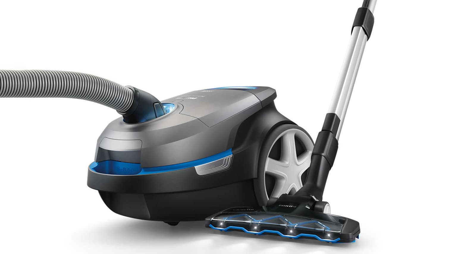 Благодаря очень высокой для своего класса (а это бытовой напольный пылесос) мощности всасывания пылесос Philips Performer Ultimate позволит быстро и тщательно убирать большие площади пола как с твердыми участками, так и с ковровыми покрытиями. При этом даже не придется менять насадку или переключать режим ее работы, поскольку пылесос комплектуется универсальной насадкой TriActive LED. К достоинствам этой насадки также относятся яркая светодиодная подсветка с широким охватом, помогающая контролировать уборку в темных закоулках, и отсутствие щетины, в которой обычно запутываются волосы и нитки.