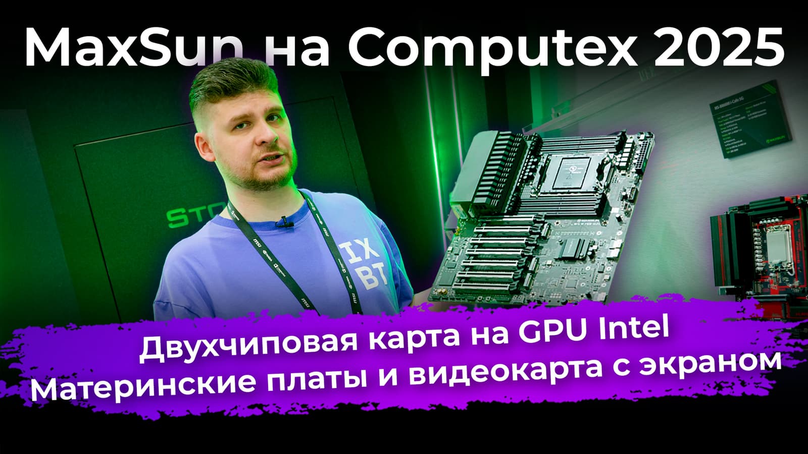 В этом видео мы покажем и обсудим все новинки со стенда компании MaxSun на выставке Computex 2025: двухчиповая карта на GPU Intel, материнские платы и видеокарта с экраном.